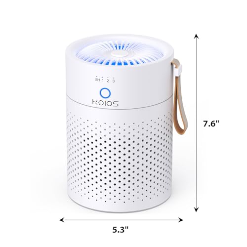 KOIOS - منقي هواء لغرفة النوم بالمنزل، منقي هواء كويوس H13 ترو هيبا لسطح المكتب والسيارة والحيوانات الأليفة مع كابل USB، منظف هواء صغير، ضوء ليلي، مؤقت، يزيل الدخان والغبار والروائح وحبوب اللقاح