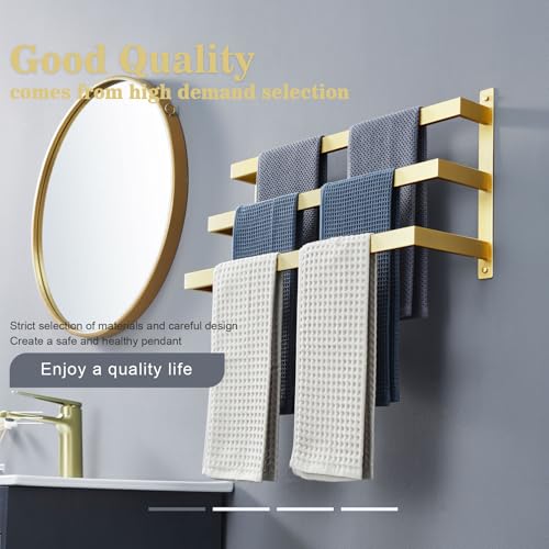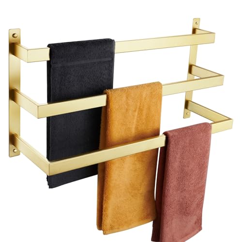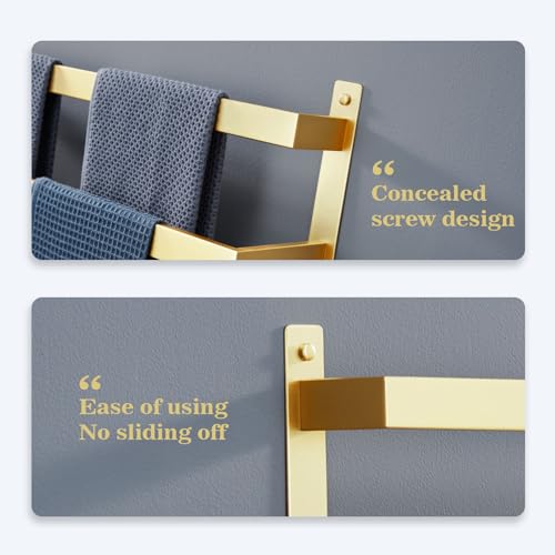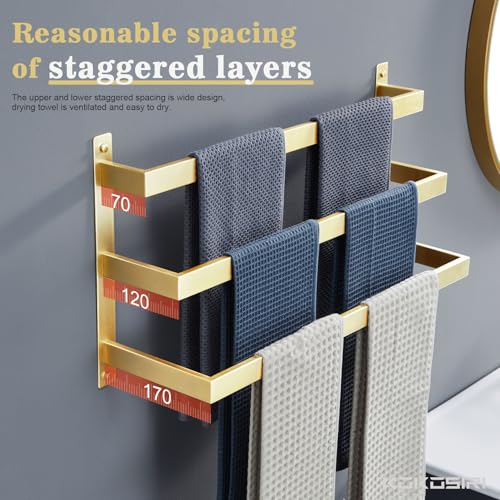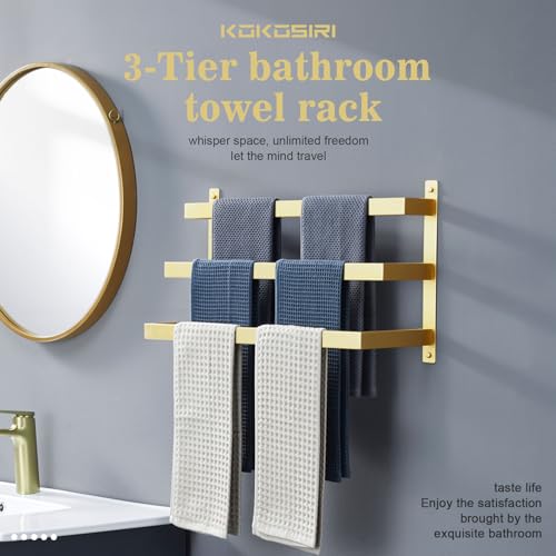 KOKOSIRI - حامل فوط حمام من كوكوسيري من 3 طبقات متدرجة، قضيب حمل فوط ذهبي مصقول يثبت على الحائط، رف فوط من فولاذ مقاوم للصدأ، B5006BG-L24