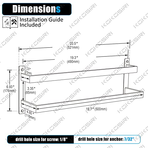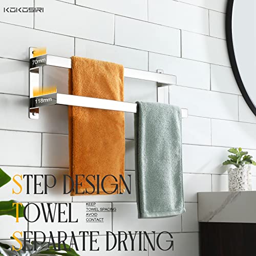 KOKOSIRI - قضبان تعليق فوطة حمام من كوكوسيري، حامل فوط حمام بطول 50 سم، من الفولاذ المقاوم للصدأ المصقول بالكروم، تصميم بمستويين، يُثبت على الحائط ومنظم للأرفف، موديل B5008CH-L20
