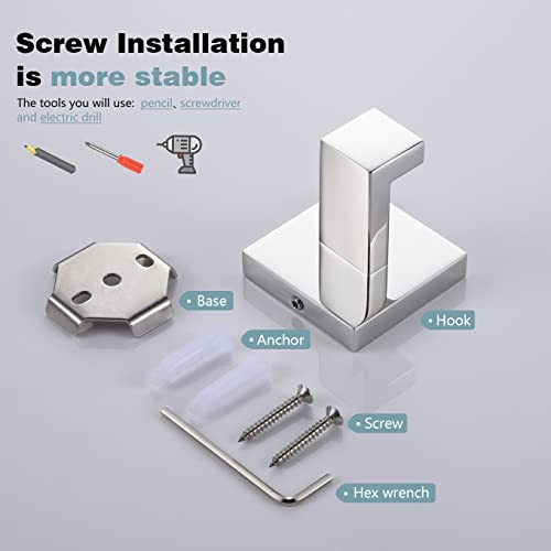 KOKOSIRI - كوكوسيري خطافات لتعليق المناشف والحمام من الستانلس ستيل مكونة 3 قطع الحائط للمطبخ والمنزل الكروم المصقول B1010CH-P3 كروم مصقول