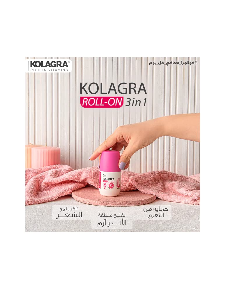 Kolagra - رول دوار لتفتيح البشرة من كولاجرا 3 في 1+1 - بحجم 120 مل، وردي