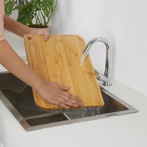 - تصميم صغير وعملي: يوفر لوح التقطيع غروف ميت من كولور المصنوع من الخيزران بحجم صغير يبلغ مقاس 28 × 18.5 × 1.6 حلاً مضغوطًا لاحتياجات مطبخك. يضمن تصميمها المدروس عملية للتقطيع والتقطيع والتقديم.