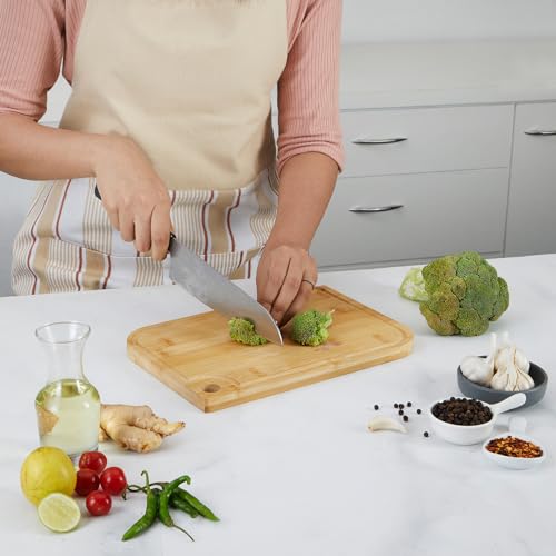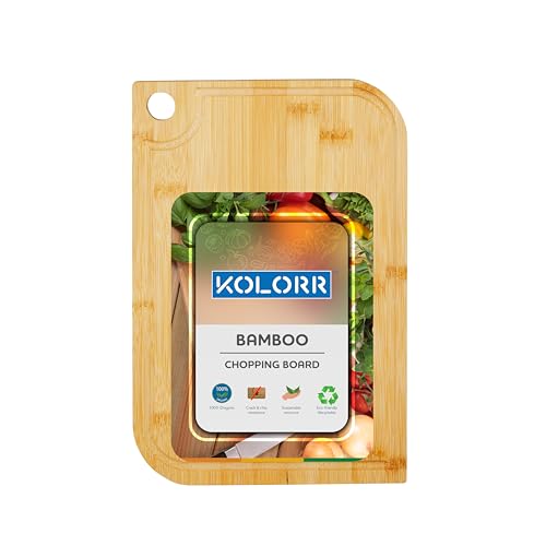 KOLORR - لوح تقطيع من الخيزران من كولور بمقبض من كولور - مقاس سمول | 28 × 18.5 × 1.6 | لوح تقطيع صديق للبيئة ومضاد للميكروبات، طبق تقديم للخضروات والفواكه واللحوم والجبن