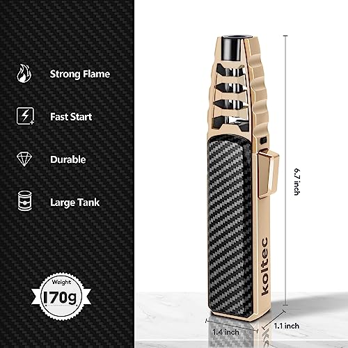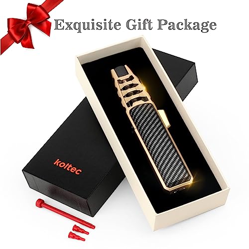 KOLTEC - شعلة غاز البوتان من كولتيك، ولاعة طبخ مقاومة للرياح للاستخدام في الخارج وقابلة لإعادة الملء والتعديل، ولاعة غاز البوتان للمطبخ بقفل أمان وإشعال النار، عبوة صندوق هدايا (الغاز غير متضمن) (كربون)