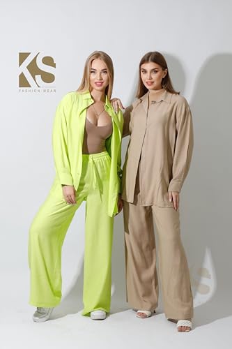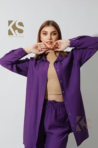 KOMA - طقم قميص طويل وبنطلون بارجل واسعة للنساء من كوما، مقاس XL - ارجواني