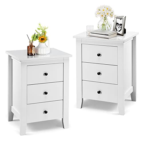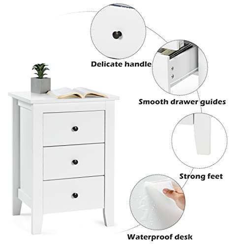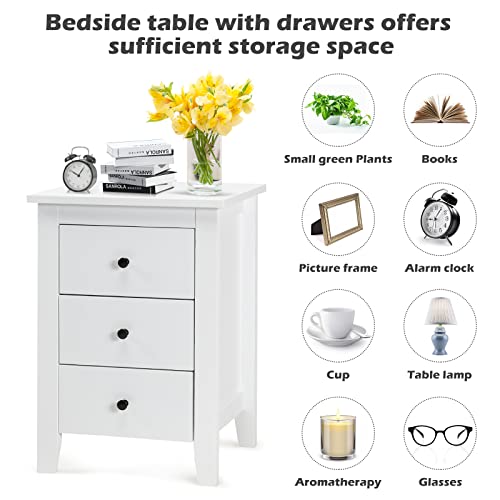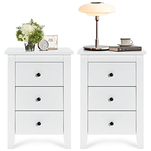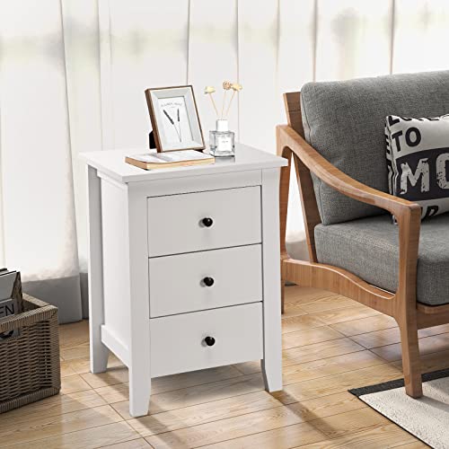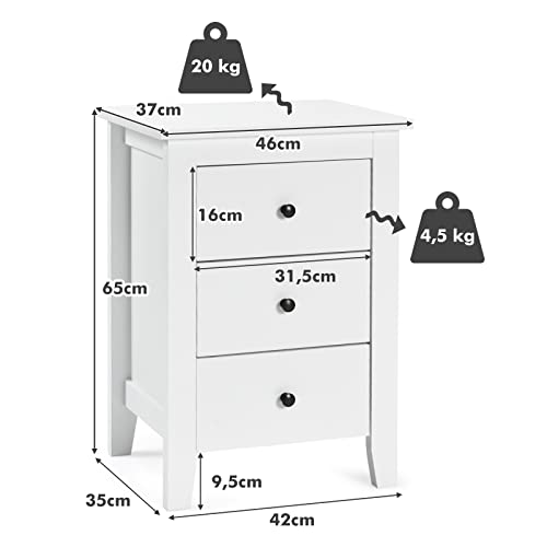 KOMFOTTEU - طاولة بجانب السرير مع 3 ادراج من كومفوتتو، طاولة جانبية خشبية، خزانة بجانب السرير 46 × 37 × 65 سم، طاولة بجانب السرير لغرفة المعيشة وغرفة النوم (2، ابيض)