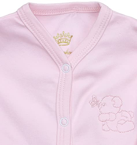 komkom - سالوبيت مطرز بكم طويل وارجل، لون بينك، مناسب لعمر 0-3 شهور من كومكوم