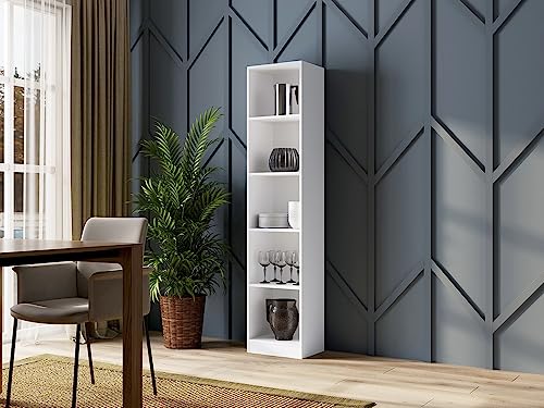 Home Collective - رف قائم للكتب والملفات وتقسيم الغرفة مع 5 مساحات تخزين مفتوحة مصنوع من خشب ليفي متوسط الكثافة من هوم كوليكتيف، لون أبيض، العرض 40 سم