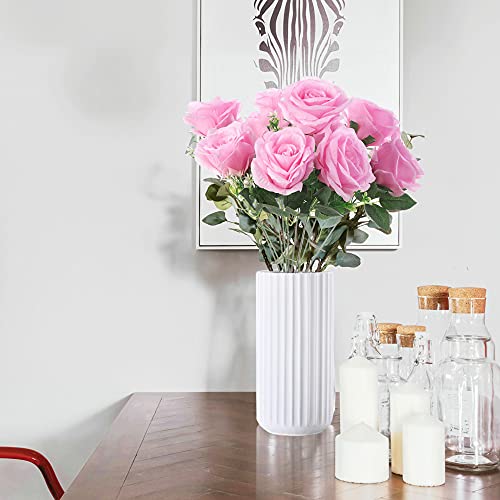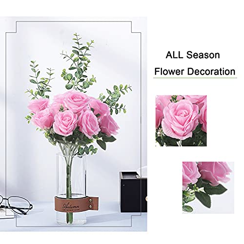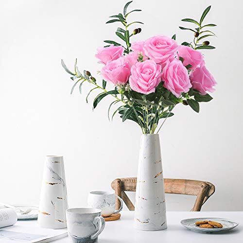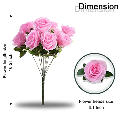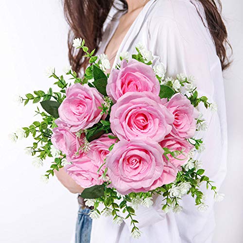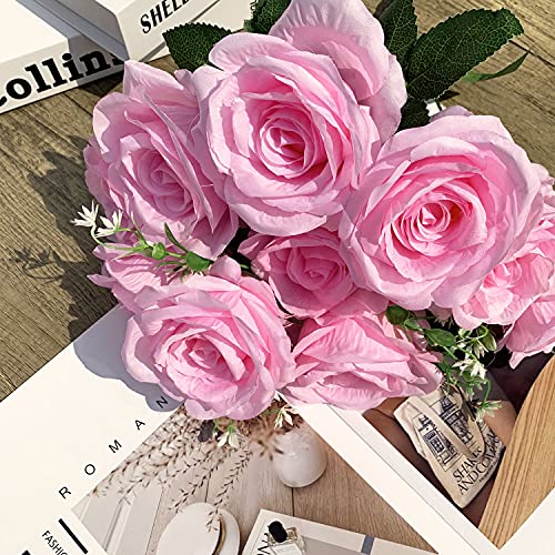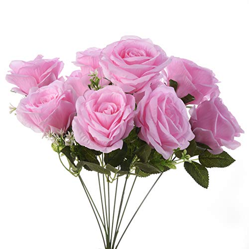 KONCHILE - كون تشيل باقة ورود اصطناعية من الحرير مكونة 10 فروع و10 رؤوس و10 كبيرة لحفلات الزفاف وحفلات وديكور المنزل والمكتب والحفلات والحديقة بينك زهري