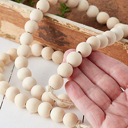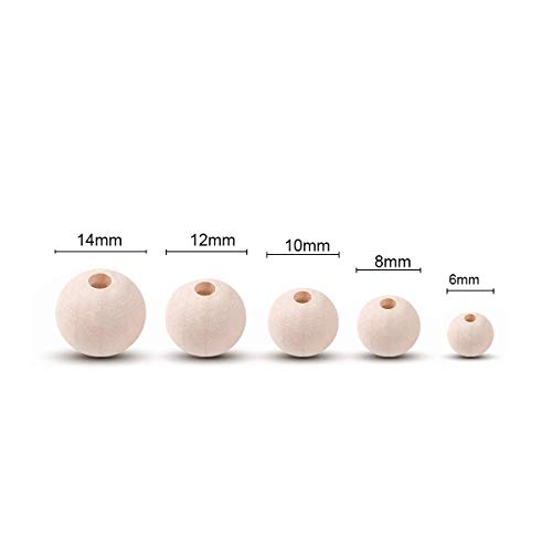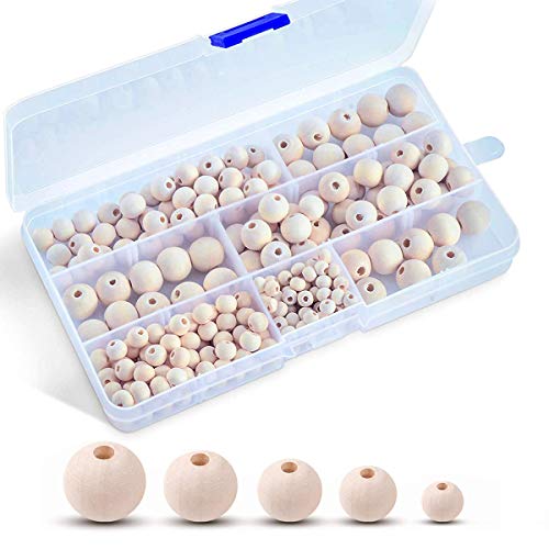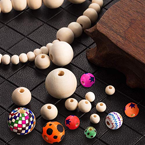 KongJies - خرز خشبي غير مكتمل، 5 احجام خرز خشبي طبيعي دائري غير مكتمل مع خط كريستال 157.5 انش