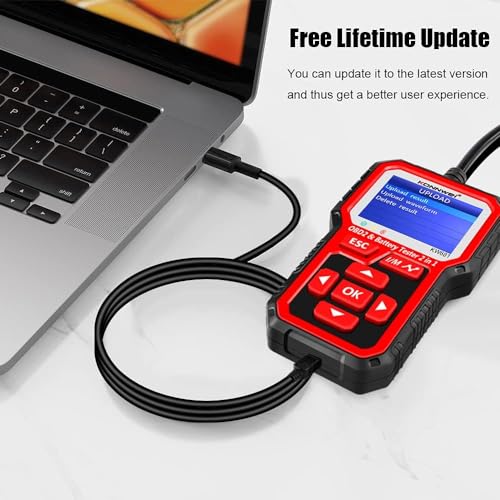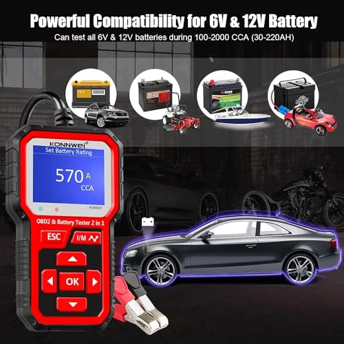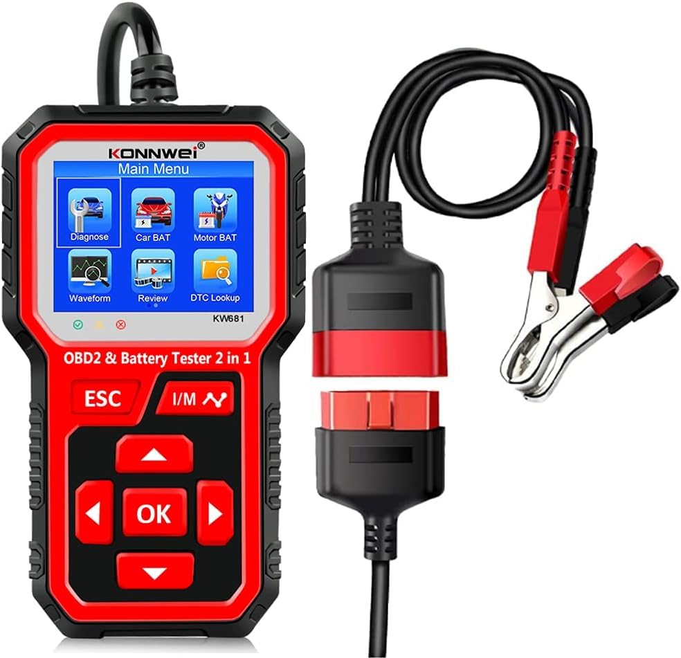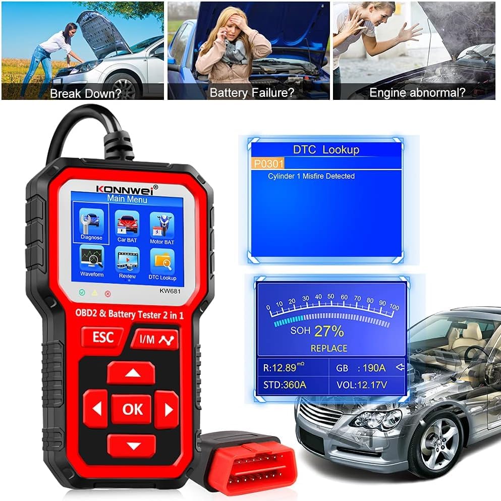 Generic - جهاز فحص KW681 من كونوي، جهاز فحص OBDII للسيارات + جهاز اختبار بطارية السيارة 2 في 1