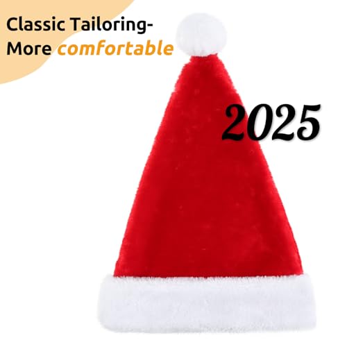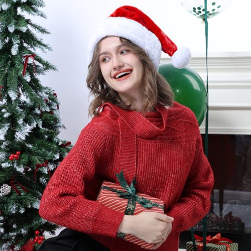 KONVINIT - طاقية عيد الميلاد سانتا الفاخرة للكريسماس من القطيفة الفاخرة واسعة لسانتا مع كرة بوم بوم من الفرو الصناعي في الأعلى للبالغين من كونفينت