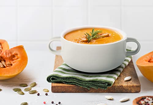 KooK - أطباق عميقة للشوربة من السيراميك من كوك، آمنة للاستخدام في الفرن والميكروويف وغسالة الأطباق مع مقابض، للطواجن والمعكرونة والحبوب، 532 مل، طقم من 4 قطع، لون (أبيض كوكونت)