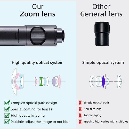 - 【مجهر رقمي بتقنية IPS مطور】عدسة بؤرية جديدة لتصوير أكثر وضوحًا. بالمقارنة مع المجاهر العادية، فإن مجهر كولرترون الخاص بنا يتميز بتصوير أوضح ومراقبة أكثر ملاءمة. تعتمد العدسات البصرية على تقنية طلاء عالية الدقة مضادة للانعكاس. تظل الصورة واضحة عندما يزداد التكبير من صغير إلى كبير، ولا يكون أي تعديل للتكبير غير واضح.