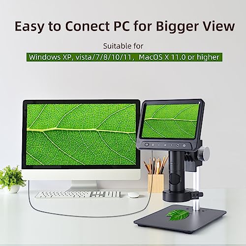 - 【شاشة LCD عالية الدقة قابلة للعكس مقاس 17.7 سم】 يدعم المجهر LCD دقة فيديو 1080 FHD ودقة صورة 12 مليون بكسل. من السهل رؤية التفاصيل الواضحة للأشياء الصغيرة، مما يمنح الناس تجربة مراقبة أكثر وضوحًا وبديهية للعالم المجهري. تصميم شاشة قابل للعكس (90 درجة) للتخلص من إجهاد العين والرقبة.