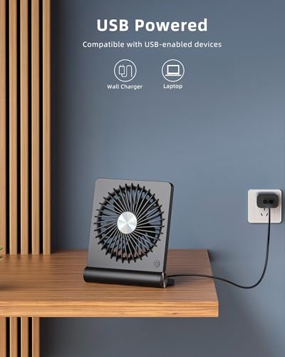 Koonie - مروحة USB من كوني مكتب صغيرة هادئة للغاية قابلة للإمالة 220 درجة بعدد 3 سرعات للتعديل بمنفذ نوع C للمنزل والمكتب وسطح المكتب اسود 5 watt_hours واط