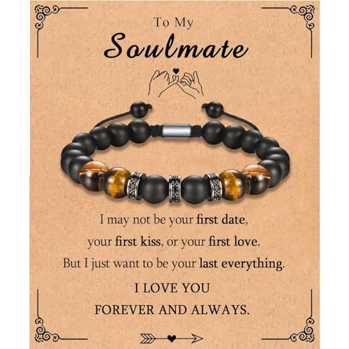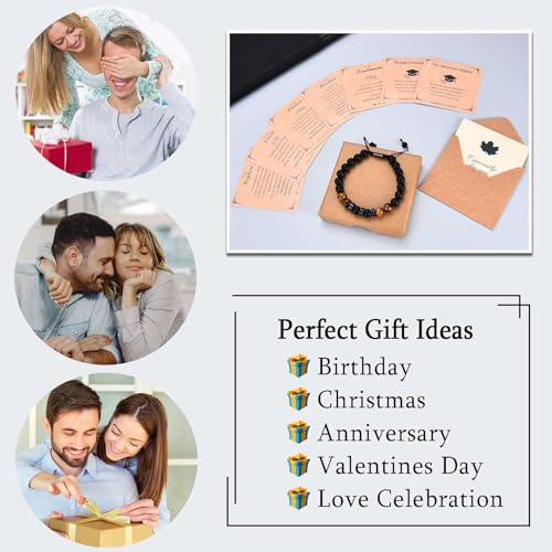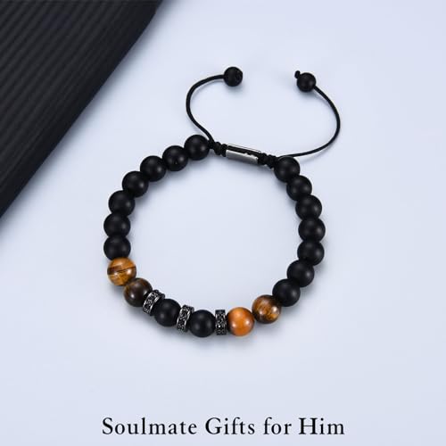 KORAS - سوار من حجر العقيق اليماني الاسود للصديق والزوج والصديق كوراس خرز قابل للتعديل كهدية للذكرى السنوية واعياد الميلاد وعيد الاب والكريسماس للبالغين الجنسين