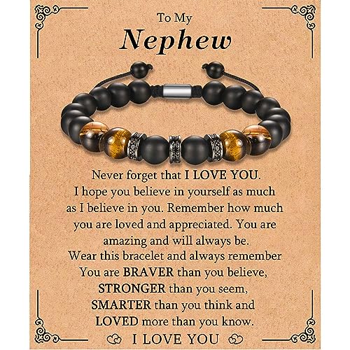 generic - هدايا ابن اخ من كوراس، سوار ابن اخ عين النمر، سوار حجر العقيق الاسود لابن الاخ، سوار خرز قابل للتعديل، هدايا ابن الاخ من العمة والعم في عيد الميلاد والتخرج والكريسماس