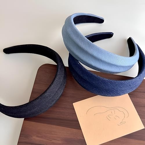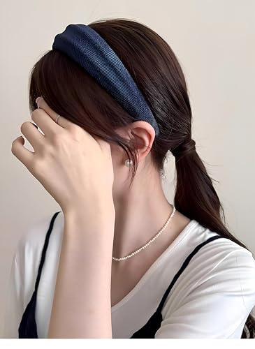 Generic - شريط راس كوري - احدث صيحات الموضة لعام 2025 من قماش الدينيم الازرق بحافة عريضة، اكسسوار طوق شعر بسيط للنساء بالجملة اطلب بالجملة نمط جديد (جينز باياك)