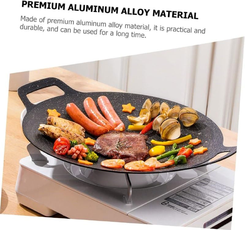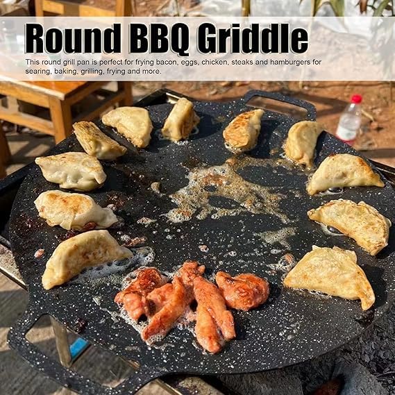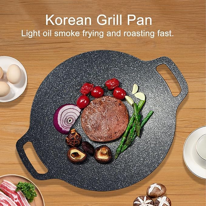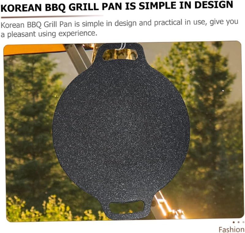 Generic - مقلاة دائرية كورية مطلية غير لاصقة للشواء والتخييم مع مقبض للطبخ الداخلي والخارجي