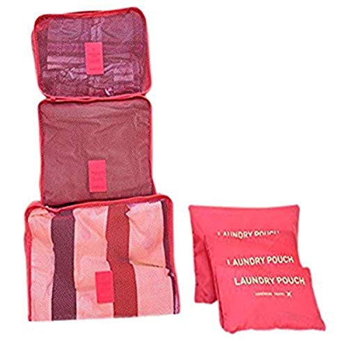 KORENKAB - مجموعة شنط منظمة للسفر يتضمن شنطة كبيرة مقاومة للماء وشنطة متوسطة واكياس صغيرة غسيل تكفي لرحلة من 7-10 ايام 6 قطع بينك كورينكاب نايلون زهري