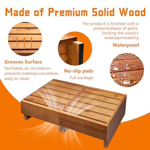 koretech - درجات خارجية بارتفاع 6 انش من كوريتيك، مقعد خشبي مع وسادات مضادة للانزلاق، منصة خشبية، درج للخارج، مقعد امان للحمام والمطبخ والسرير، لون خشب البلوط