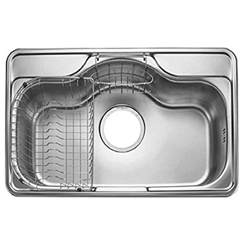 korina - حوض- حله كوري HJIS 850 مقاس 51.5 سم x 85 سم بشبكة استانلس للمنظفات فى المنتصف وصفاية اطباق استانلس جانبية والصرف من كورينا