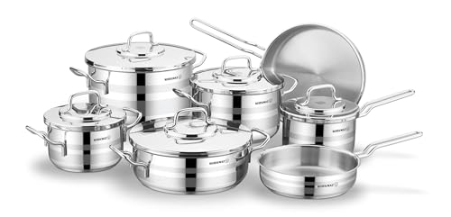 Korkmaz - كوركماز طقم اواني طهي ستيل من استرون، 12 قطعة، فضي