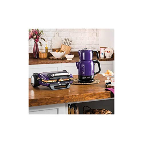 Korkmaz - طقم إبريق شاي كهربائي كايتيما من كوركماز، سعة 0.9/1.7 لتر، أرجواني فاتح