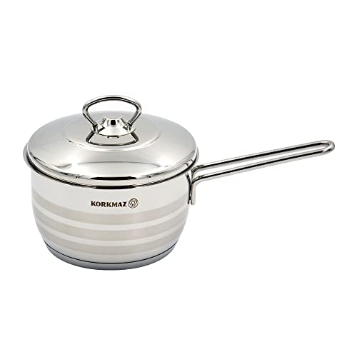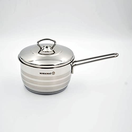 Korkmaz - قدر طبخ من كوركماز، مصنوع من الستانلس ستيل، بتشطيب لامع، سعة 2 لتر. يأتي مع مقبض ستانلس ستيل ويتميز بقاعدة تريبلكس ثقيلة وفولاذ مقاوم للصدأ عالي الجودة 18/10