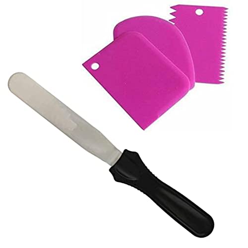 KOSH - سكينة كيك وملعقة سباتولا من الفولاذ المقاوم للصدأ لتزيين الكيك إنها أفضل اداة لتزيين الكيك (مستقيمة + 3 قطع مكشطة كيك) طقم أدوات مطبخ من كوش عبوة كومبو