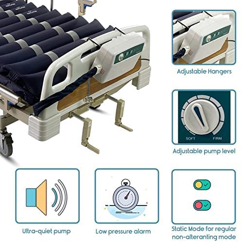 - يخفف من تقرحات السرير والقرحات: يوفر الراحة من تقرحات السرير والقرحة الناجمة عن مسند الفراش الممتد، يعزز السرير الطبي البديل للمرضى زيادة الدورة الدموية ويساعد على التحكم في تقلص الجلد. توزع مرتبة الضغط المتغير الوزن بالتساوي لتخفيف بقع الضغط للحصول على دعم وراحة استثنائيين. مثالية للمرضى الذين يعانون من عدم الحركة أو الضعفاء الذين لا يستطيعون تغيير وزنهم بشكل متكرر.