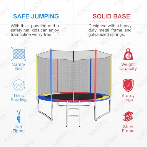 KOSTEN SPORTS - ترامبولين من كوستين سبورت مزودة بشبكة حماية للأطفال والبالغين للاستعمال في الداخل والخارج بقدرة تحمل فائقة وهيكل وأرجل من الفولاذ المقاوم للصدأ