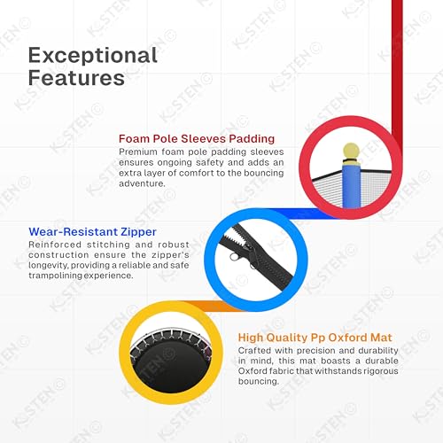 - سهلة التركيب - مع إرشادات التجميع التفصيلية وجميع الأدوات المتوفرة، من السهل إعداد الترامبولين الخاص بك. -