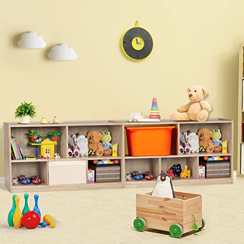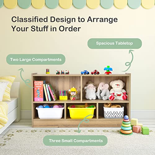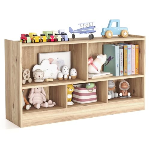 KOTEK - رف كتب للاطفال من كوتيك، منظم تخزين العاب 5 مقصورات، خزانة تخزين خشبية من 3 طبقات، رف كتب عرض مفتوح للرعاية النهارية والحضانة والفصول المدرسية وغرفة اللعب وغرفة المعيشة (طبيعي، 5 مكعبات)