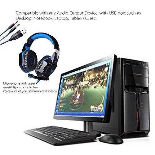 KOTION EACH - سماعة رأس ستيريو للألعاب مع صوت محيطي وتصميم يغطي الأذن بالكامل وإضاءة ليد من كوشن ايتش - لون أسود وأزرق [دي بي اي]، G2000