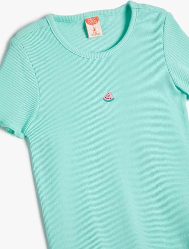 KOTON - تيشيرت كلاسيكي مضلع برقبة دائرية وأكمام قصيرة للبنات البيبي من كوتون (عبوة من قطعة واحدة)