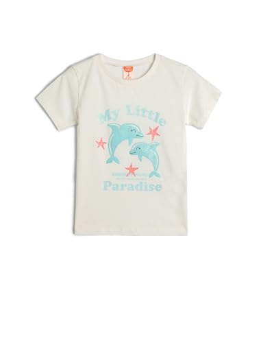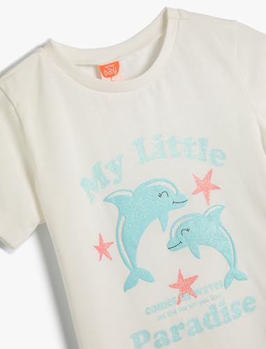 KOTON - تيشرت قطن كلاسيكي بأكمام قصيرة ورقبة دائرية ضيقة مطبوع عليه دولفين للبنات الصغيرات من كوتون (عبوة من قطعة واحدة)