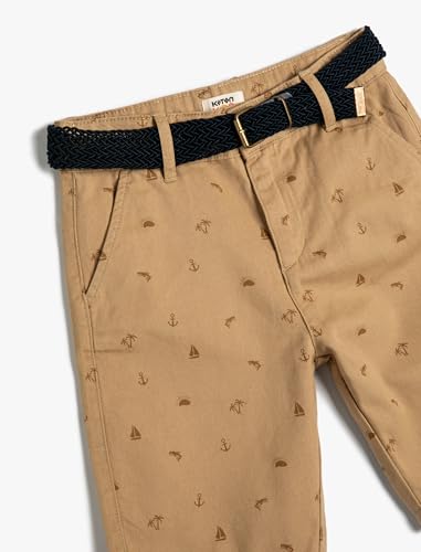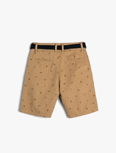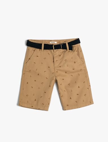 KOTON - شورت تشينو قطن بحزام وجيوب مناسبة لراحة اليد وتصميم منقوش للأولاد من كوتون، لون جملي 1D0، مقاس 11 -12 سنة