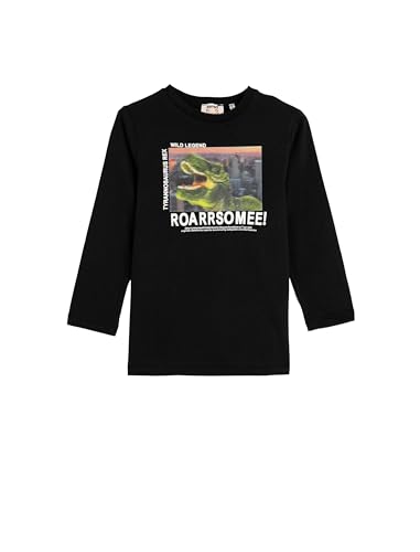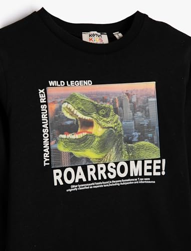 KOTON - تيشرت من القطن بأكمام طويلة ورقبة دائرية ضيقة مزين بطبعة ديناصور للأولاد من كوتون