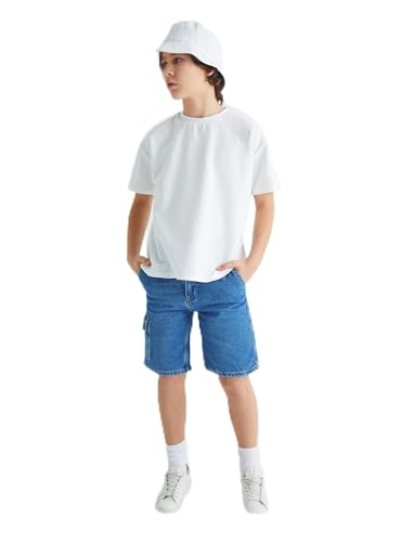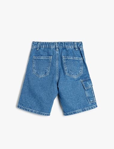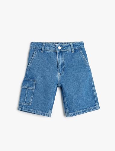 KOTON - شورت جينز قطني بجيب كارجو للأولاد من كوتون، عمر 9 - 10 سنوات، (ميد انديجو) نيلي متوسط