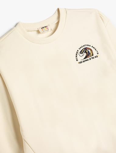 KOTON - سويت شيرت بأكمام طويلة ورقبة دائرية ضيقة بتفاصيل مطبوعة وطبقة داخلية ناعمة للأولاد من كوتون