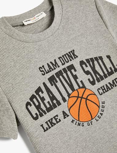 KOTON - تيشرت قطن كلاسيكي بطباعة كرة سلة للأولاد من كوتون (قطعة واحدة)