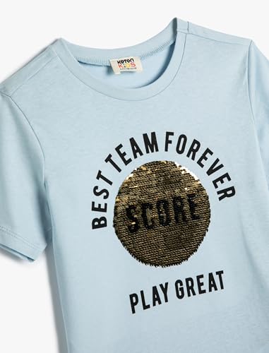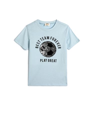 KOTON - تيشرت للأولاد بأكمام قصيرة ورقبة دائرية ضيقة مطبوع عليه كرة قدم من كوتون
