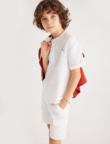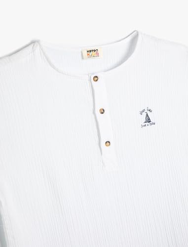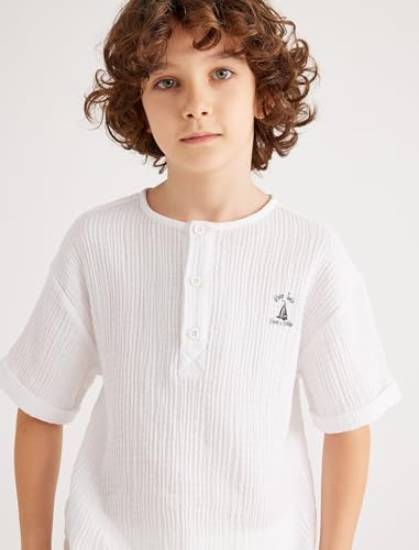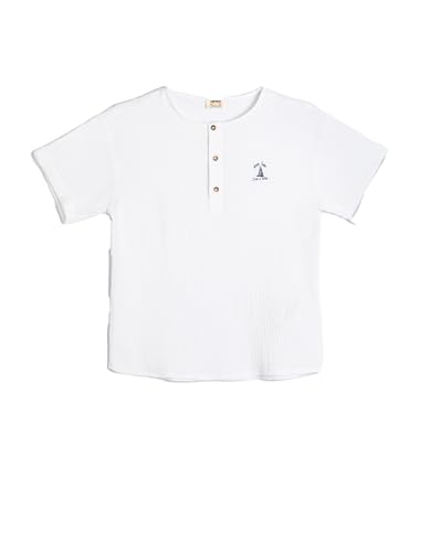 KOTON - تيشرت قطن برقبة دائرية ضيقة وأزرار أمامية للأولاد من كوتون (عبوة من قطعة واحدة)