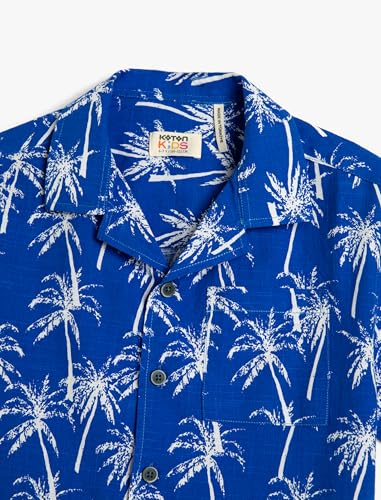 KOTON - KOTON Boys Single Pocket Detail Short Sleeve Palm Printed Shirt