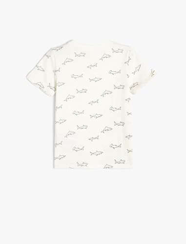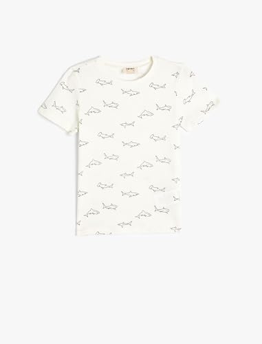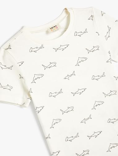 KOTON - تيشرت قطن كلاسيكي مطبوع بتصميم سمكة قرش للأولاد من كوتون (قطعة واحدة)