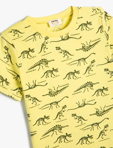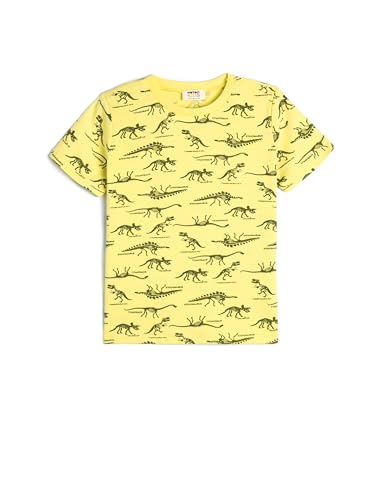 KOTON - تيشرت قطن بأكمام قصيرة ورقبة دائرية ضيقة مطبوع عليه ديناصور من كوتون، للأولاد بعمر 5 -6 سنوات، أصفر 1D5