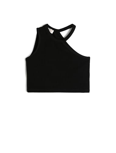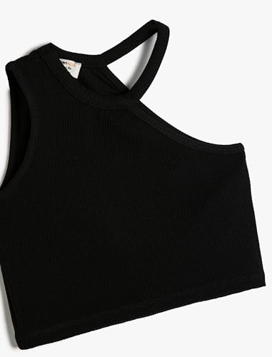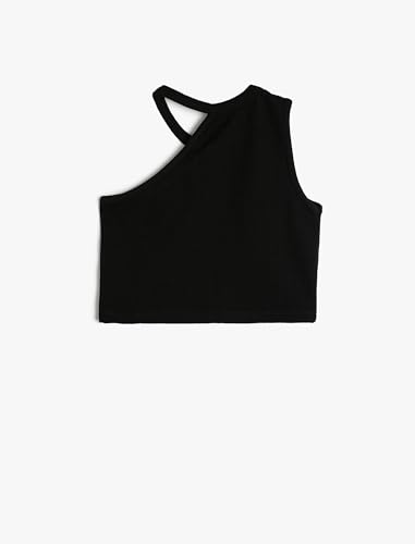 KOTON - توب كات قصير مضلع بكتف واحد ورقبة برباط للبنات من كوتون