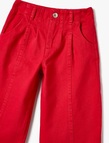KOTON - بنطلون جينز بأرجل واسعة وتفاصيل خياطة للبنات من كوتون